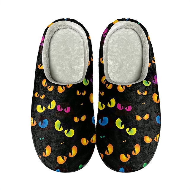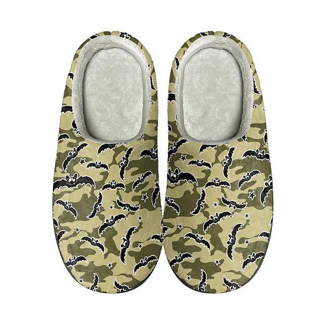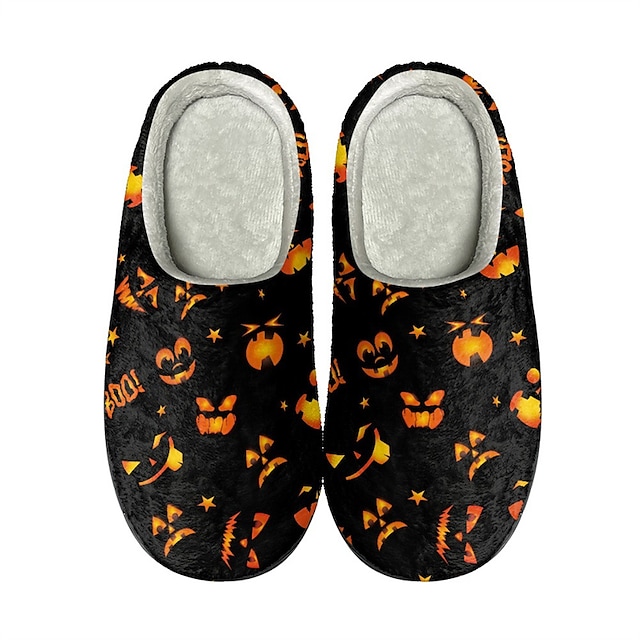 Halloween Bat Pumpkin Print Cotton Slippers Men and Women Flannel Couple Slippers