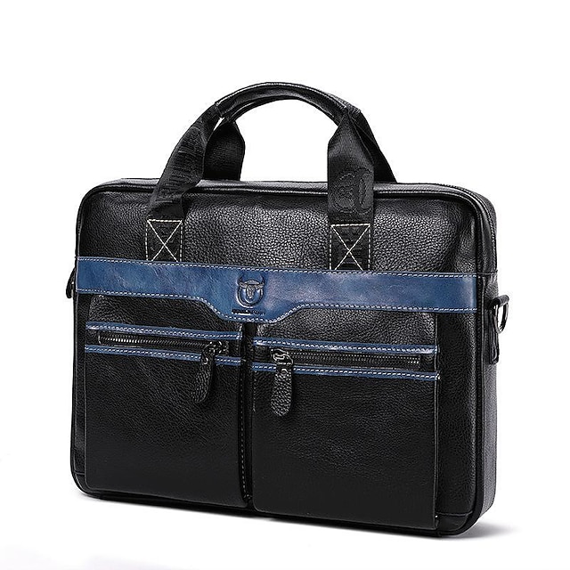 Laptop Bag Briefcase Cowhide Solid Color Green Blue Red Brown