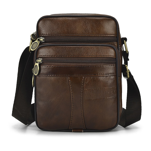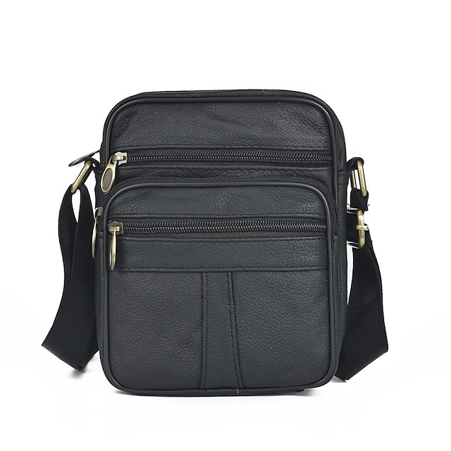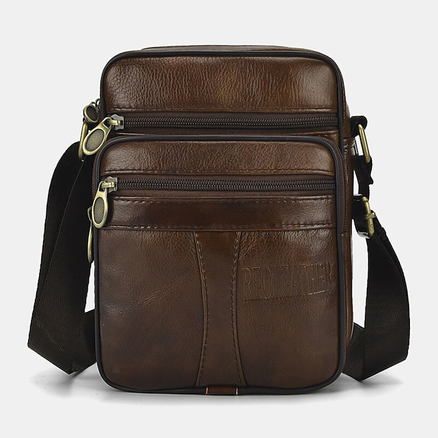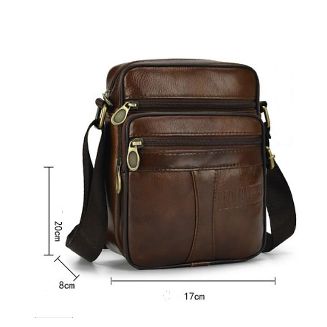 men genuine leather business casual solid color leather shoulder bag crossbody bag