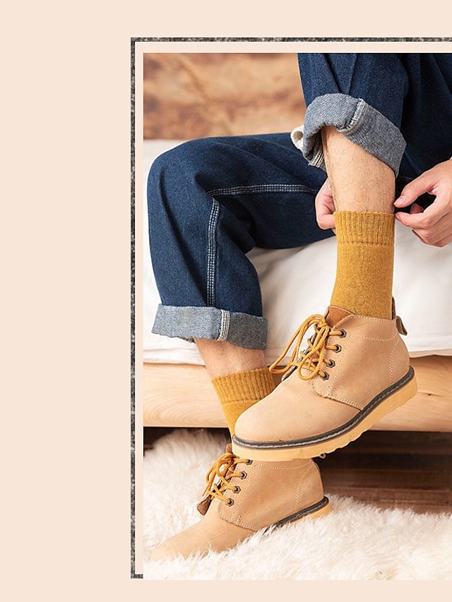 Men's 5 Pairs Socks Casual Socks Comfort Solid Colored Medium Fall & Winter Multi color Black Blue