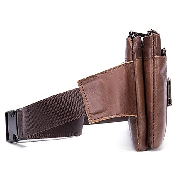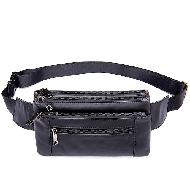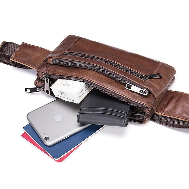Men's Bum Bag Fanny Pack Mobile Phone Bag Sling Shoulder Bag Nappa Leather Cowhide Zipper Daily Black Brown Coffee