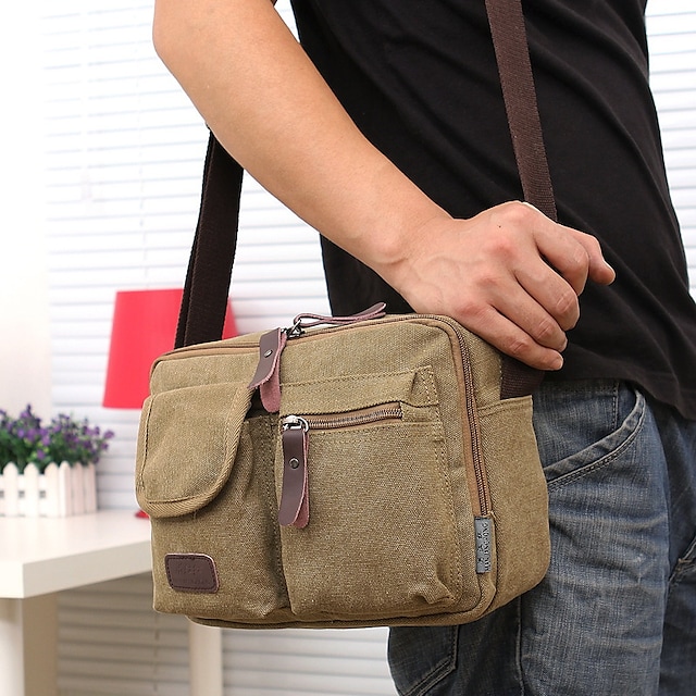 Men's Canvas Bag Messenger Bag Shoulder Messenger Bag Crossbody Bag Canvas Vintage Daily Green Black Khaki Coffee
