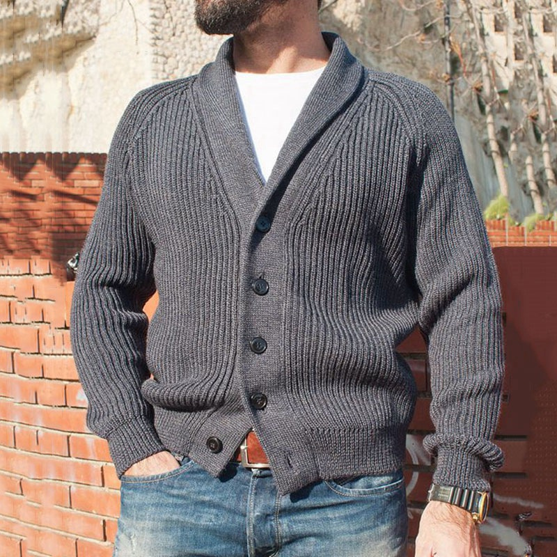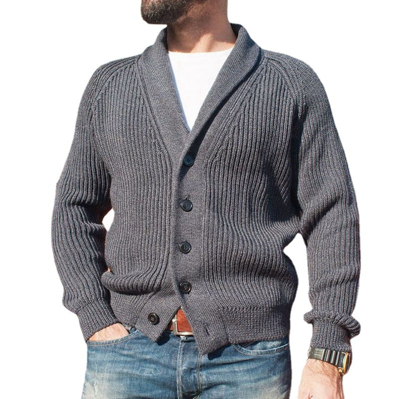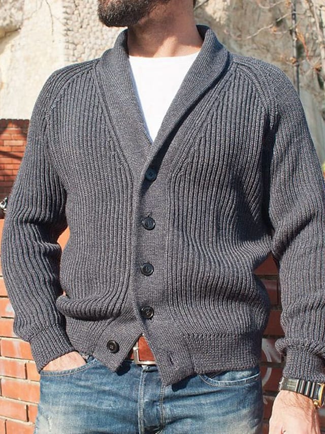 Men's Cardigan Sweater Jumper Ribbed Knit Knitted Button Solid Color Shirt Collar Basic Casual Daily Holiday Fall Winter Gray M L XL / Long Sleeve
