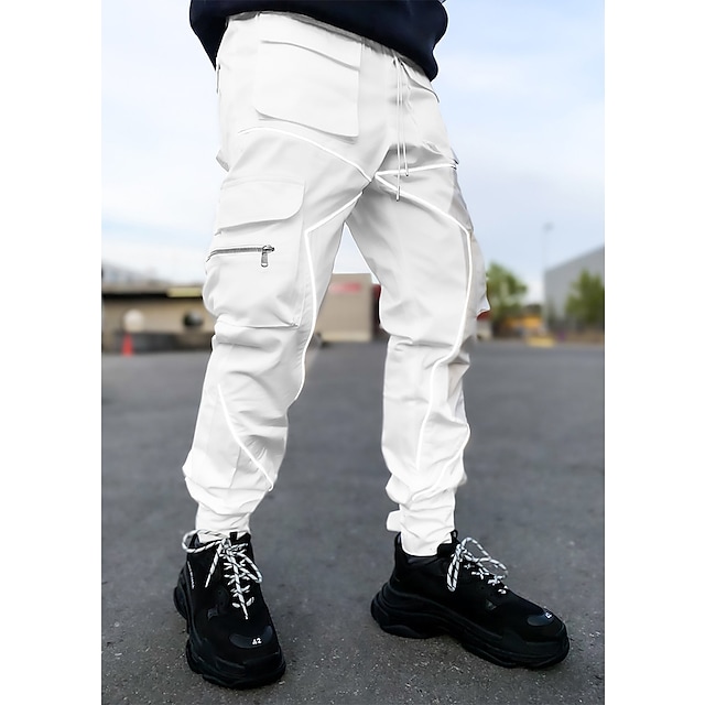 Men's Cargo Pants Multi Pocket Solid Color Pants Casual White / Black ArmyGreen