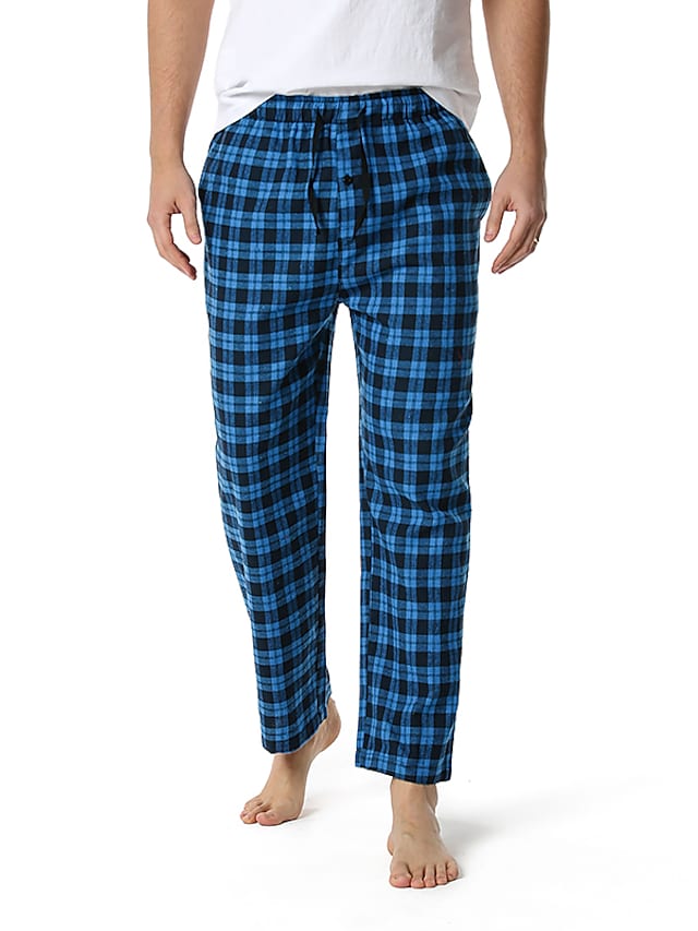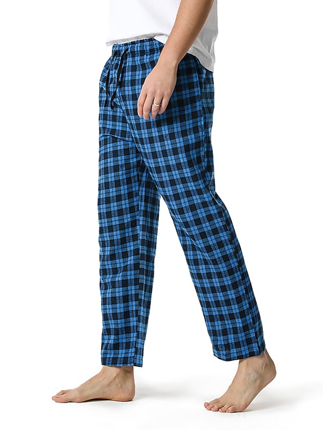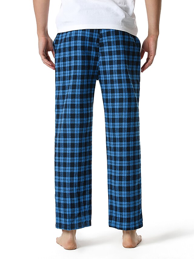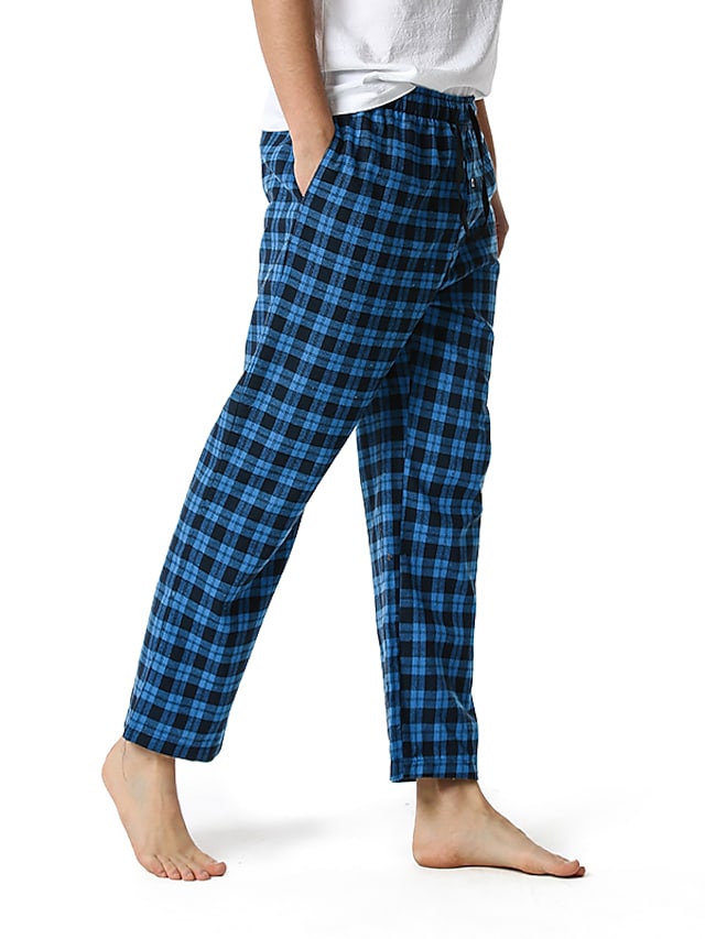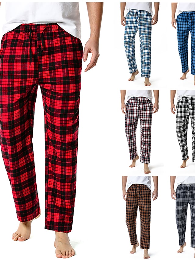 Men's Chinos Pajamas Plaid Checkered Full Length Pants Home Christmas Basic Loose Fit Smoky gray Black Micro-elastic