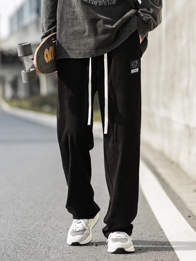 Men's Chinos Trousers Patchwork Multiple Pockets Elastic Drawstring Design Color Block Solid Colored Comfort Breathable Full Length Pants Casual Daily Corduroy Chic & Modern Big and Tall Loose Fit