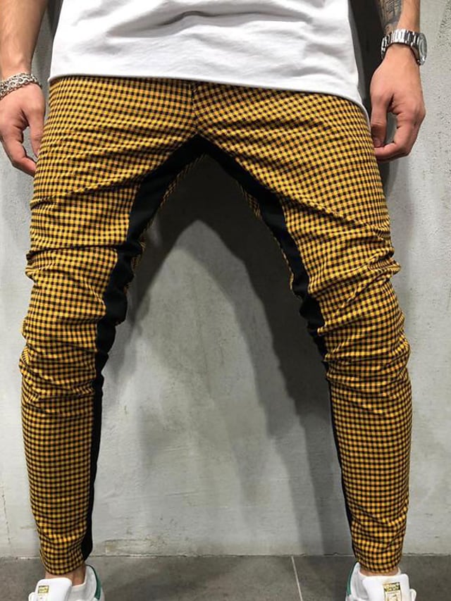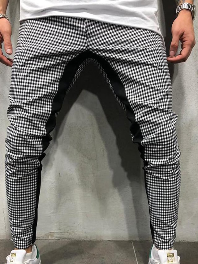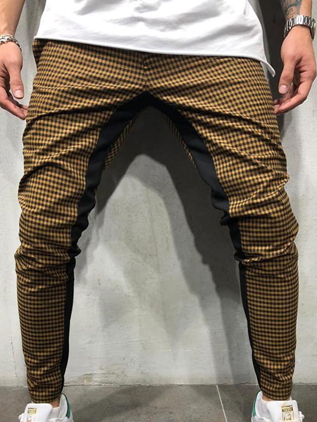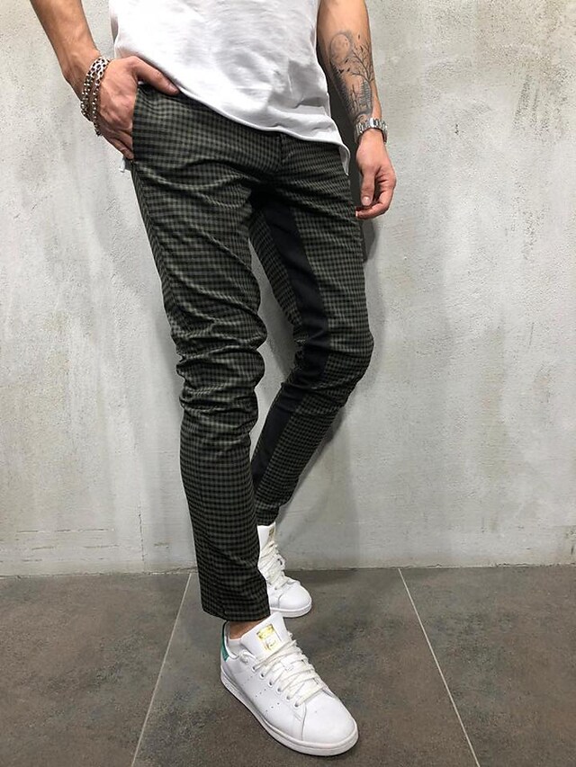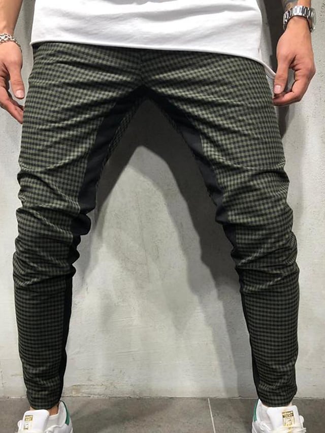 Men's Chinos Trousers Pocket Elastic Drawstring Design Lattice Breathable Soft Pants Casual Daily Fashion Streetwear Green White Micro-elastic