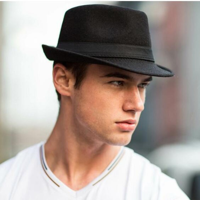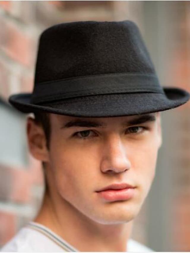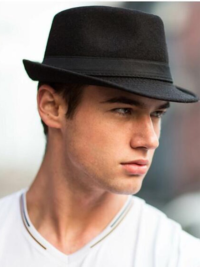 Men's Classical Fedora Hat Solid Colored Fabric leatherette Hat Casual Stylish Dress Hats Retro Gentlemen's Hat