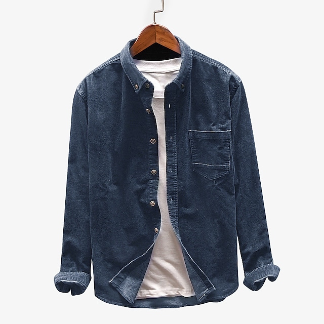 Men's corduroy patch pocket turndown collar long sleeve vintage shirts