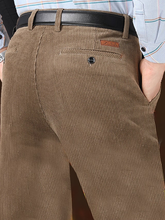 Men's Dress Pants Pocket Solid Color Breathable Outdoor Full Length Pants Business Casual Corduroy Casual Trousers Black Khaki Micro-elastic