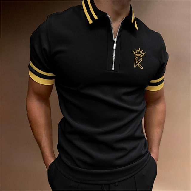 Warning: unlink(/www/wwwroot/www.fu-sky.com/system/storage/cache/cache.catalog.language.1759812397): No such file or directory in /www/wwwroot/www.fu-sky.com/system/library/cache/file.php on line 68Men's Golf Shirt Letter Turndown Black Short Sleeve Street Casual Zipper Tops Fashion Casual Comfortable / Beach