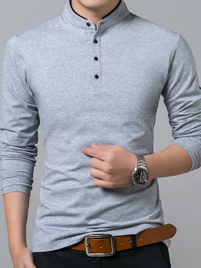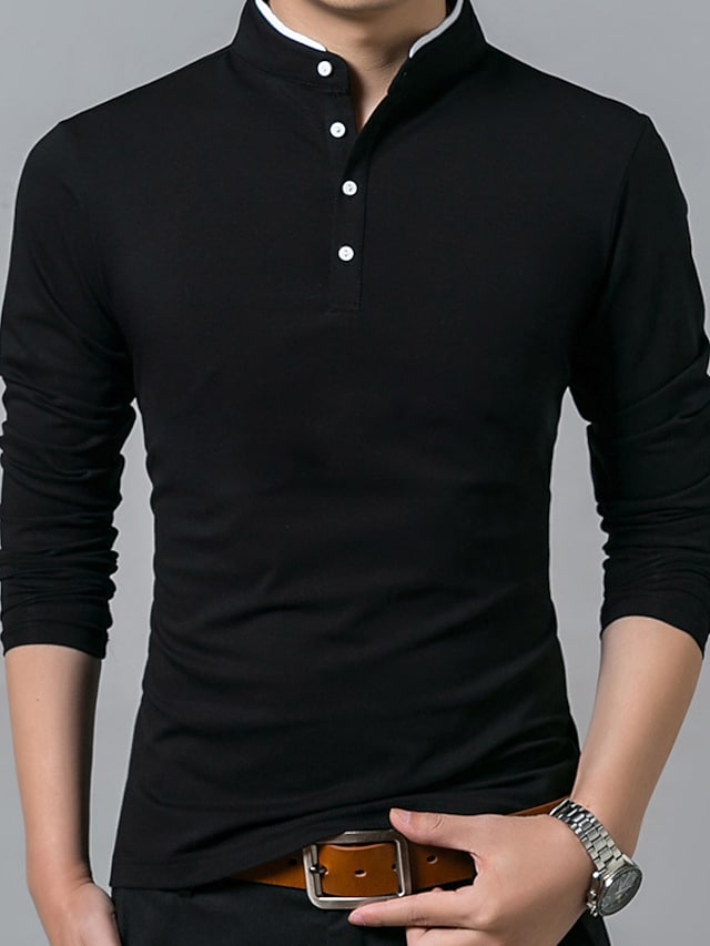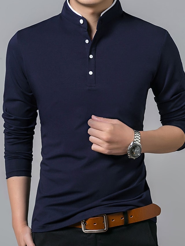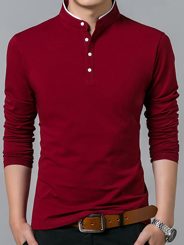 Men's Golf Shirt Solid Color Standing Collar White Black Gray Red Navy Blue Long Sleeve Outdoor Street Button-Down Tops Cotton Casual Comfortable