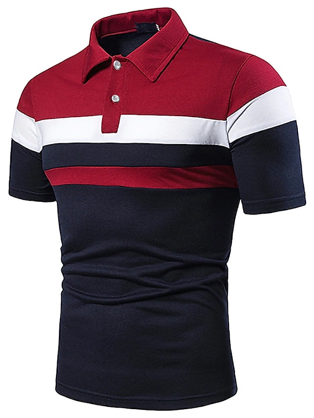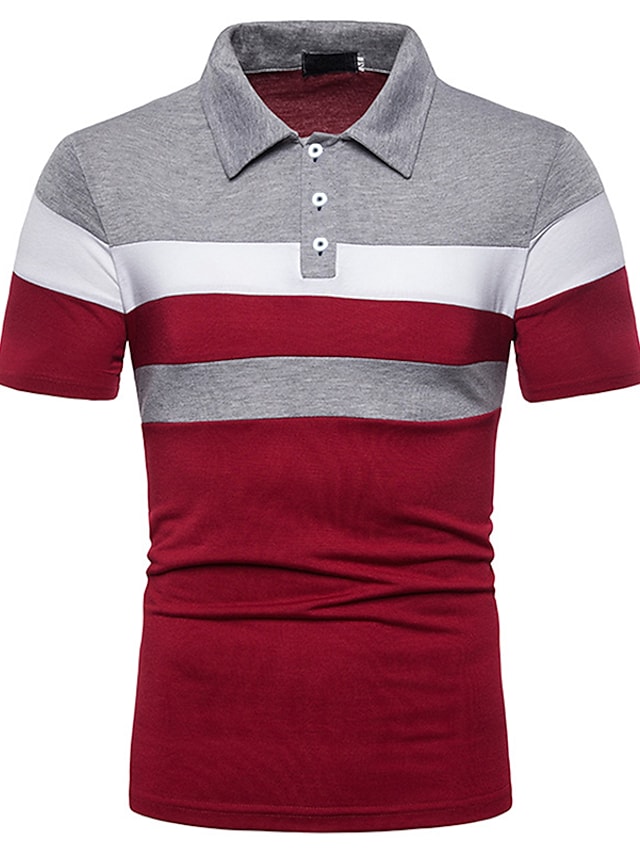 Men's Golf Shirt Tennis Shirt Simple Collar Shirt Collar Sports & Outdoor Causal Patchwork Short Sleeve Tops Cotton Casual Daily Casual / Sporty Light gray Red Navy Blue/Summer