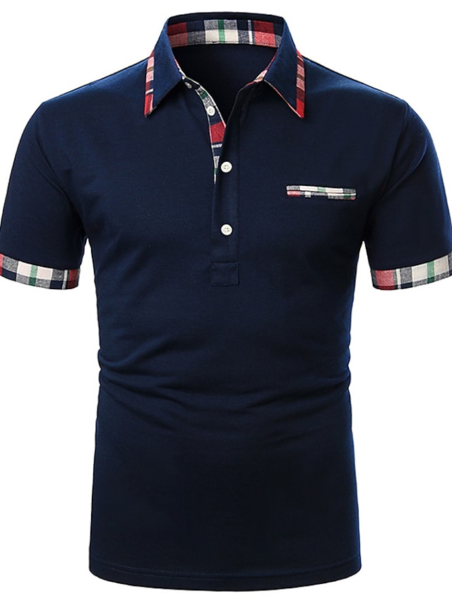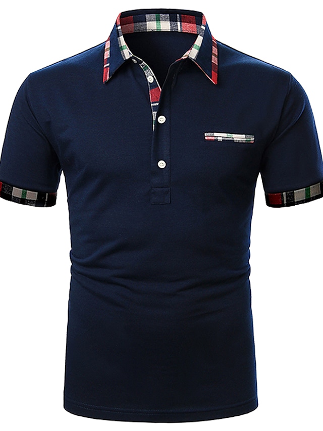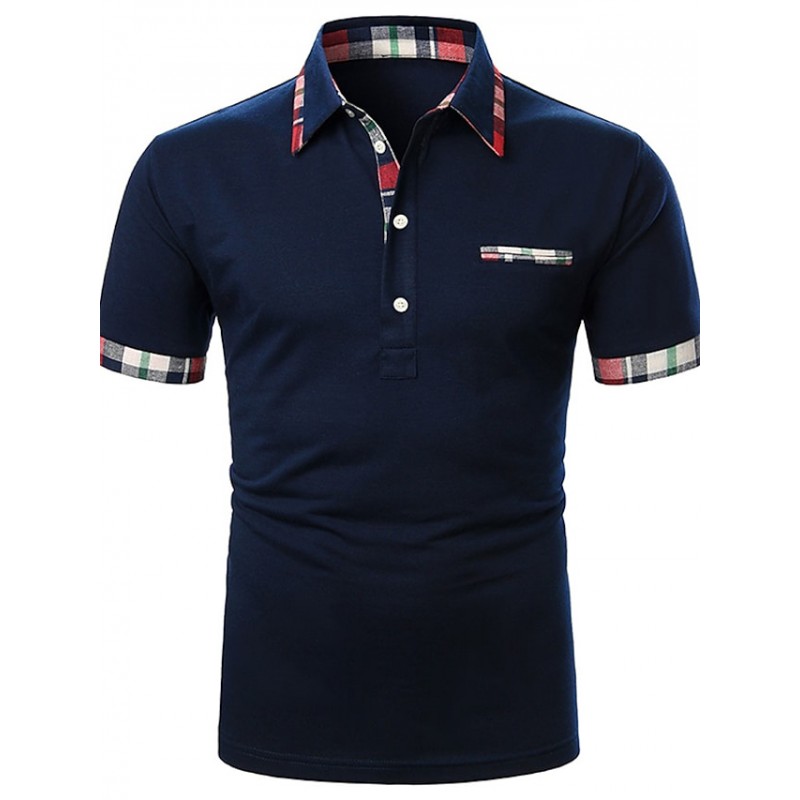 Men's Golf Shirt Tennis Shirt Solid Colored Patchwork Short Sleeve Regular Fit Tops Party Strand Contemporary Sporty Navy Blue Daily Casual Work Business Summer Shirt Basic Comfortable