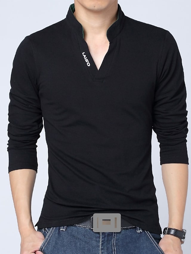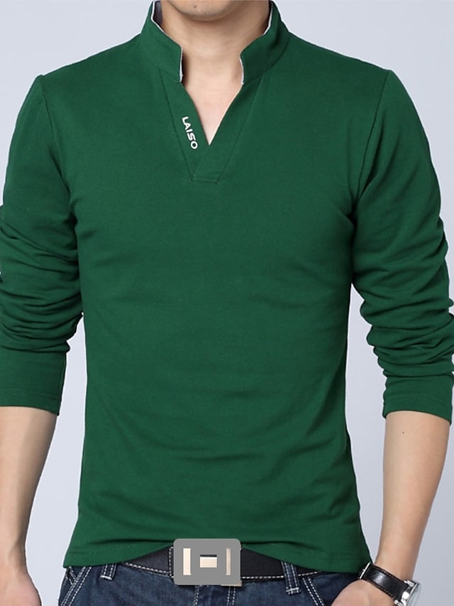 Men's Golf Shirt Tennis Shirt Solid Colored Plus Size Collar Stand Collar Daily Sports Long Sleeve Tops Cotton Sports & Outdoors Active Green White Casual Black Summer Shirts