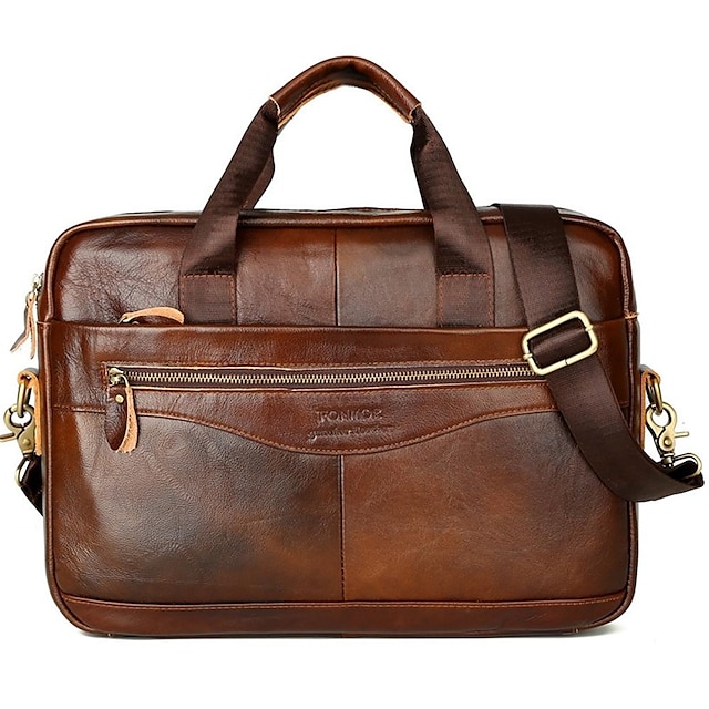 Men's Handbags Briefcase Top Handle Bag Nappa Leather Cowhide Zipper Solid Color Daily Formal Office & Career Dark Brown