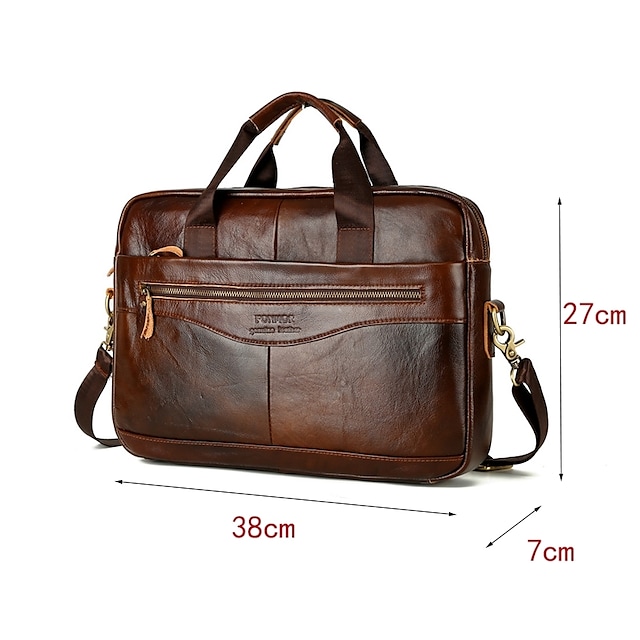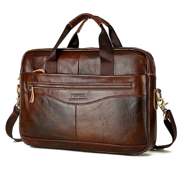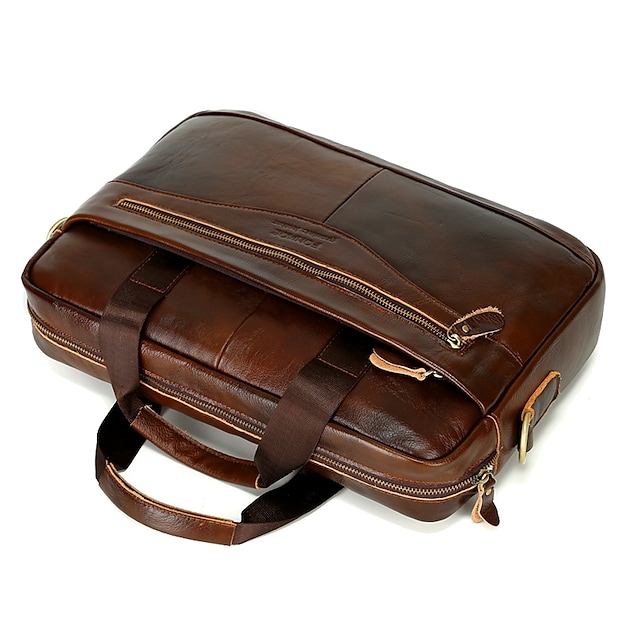 Men's Handbags Shoulder Messenger Bag Laptop Bag Briefcase Cowhide Belt Zipper Solid Color Daily Formal Office & Career Black Brown / Top Handle Bag