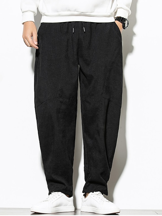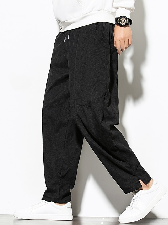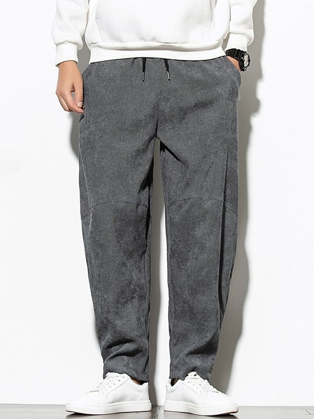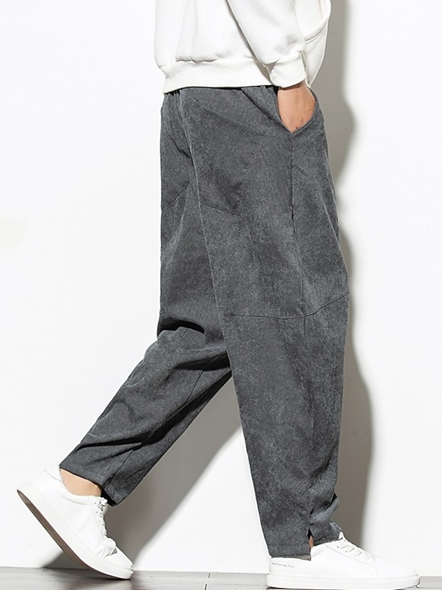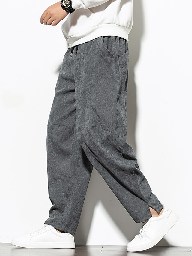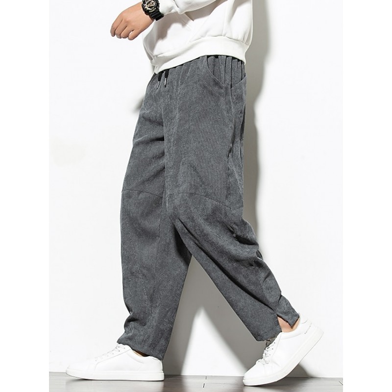 Men's Harem Pants Patchwork Elastic Waist Solid Color Breathable Soft Full Length Pants Casual Daily Corduroy Casual Harlem Pants Loose Fit Black Gray Micro-elastic / Drawstring