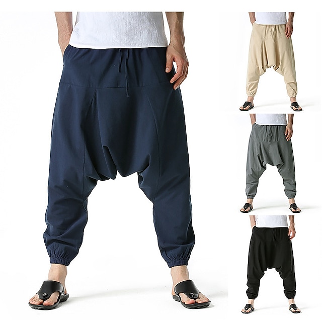 Men's Harem Sweatpants Baggy Drawstring Elastic Waist Solid Color Breathable Lightweight Full Length Pants Casual Daily Cotton Casual Black Khaki Micro-elastic / Elasticity