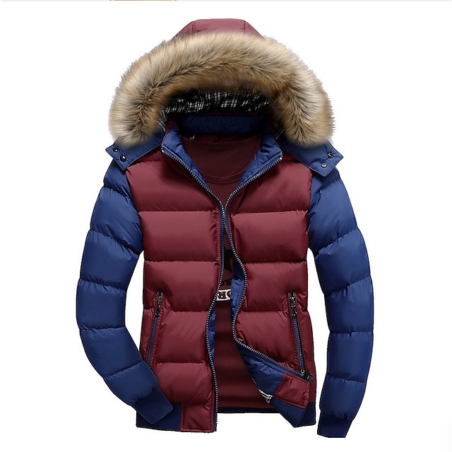 men's heavy weight winter coat with fur hood mens parka parker padded lined winter jacket faux fur hooded coat red