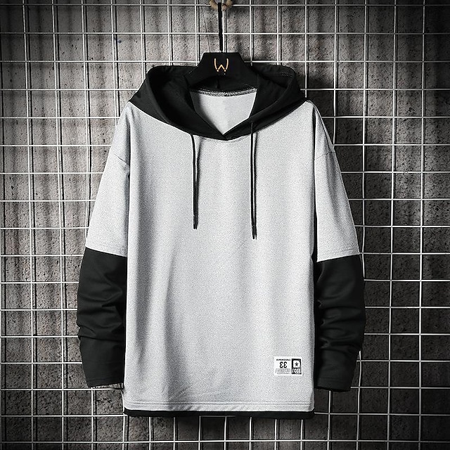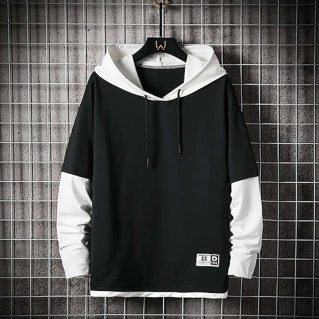 Men's Hoodie Pullover Hoodie Sweatshirt Hooded Color Block Patchwork Casual Daily Holiday non-printing Streetwear Casual Hoodies Sweatshirts Long Sleeve White Black