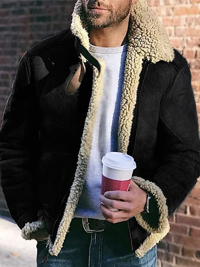 Men's Jacket Outdoor Street Daily Fall Winter Regular Coat Regular Fit Thermal Warm Breathable Streetwear Sporty Casual Jacket Long Sleeve Solid Color Fur Trim Pocket Green Black Khaki