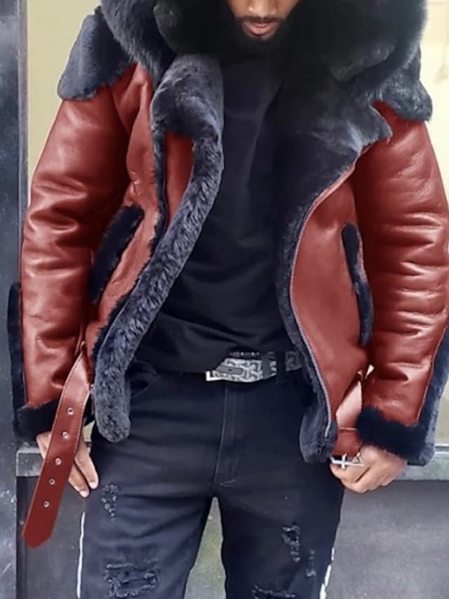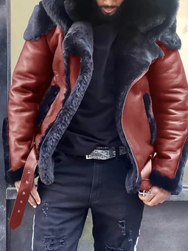 Men's Jacket Outdoor Street Daily Fall Winter Regular Coat Regular Fit Thermal Warm Windproof Breathable Streetwear Sporty Casual Jacket Long Sleeve Solid Color Pocket Green Black Wine / Faux Leather
