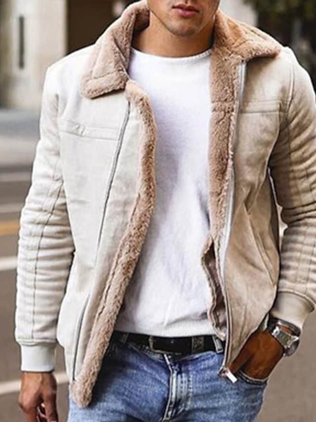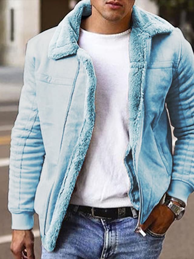 Men's Jacket Outdoor Street Daily Winter Regular Coat Regular Fit Thermal Warm Windproof Breathable Streetwear Sporty Casual Jacket Long Sleeve Solid Color Pocket Black Blue Gray / Faux Leather