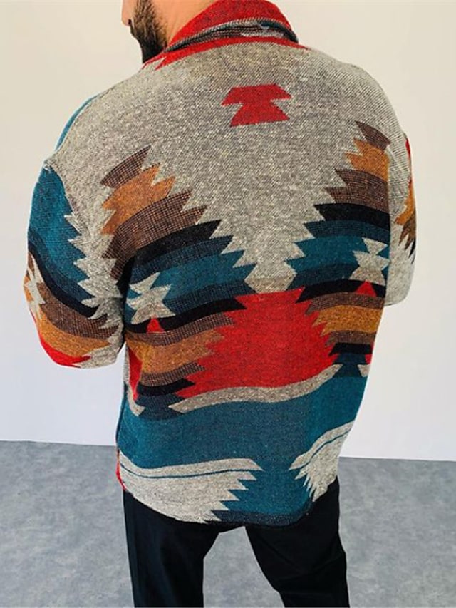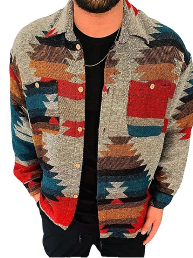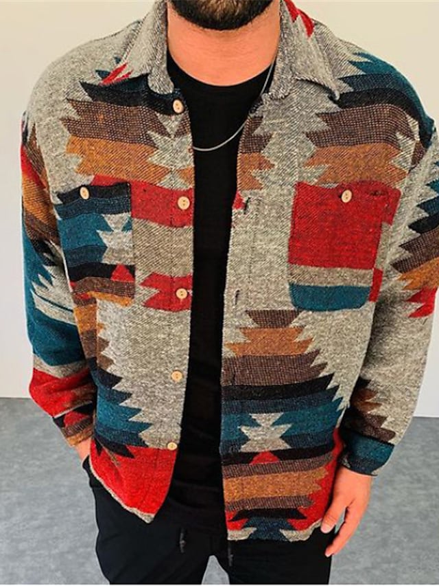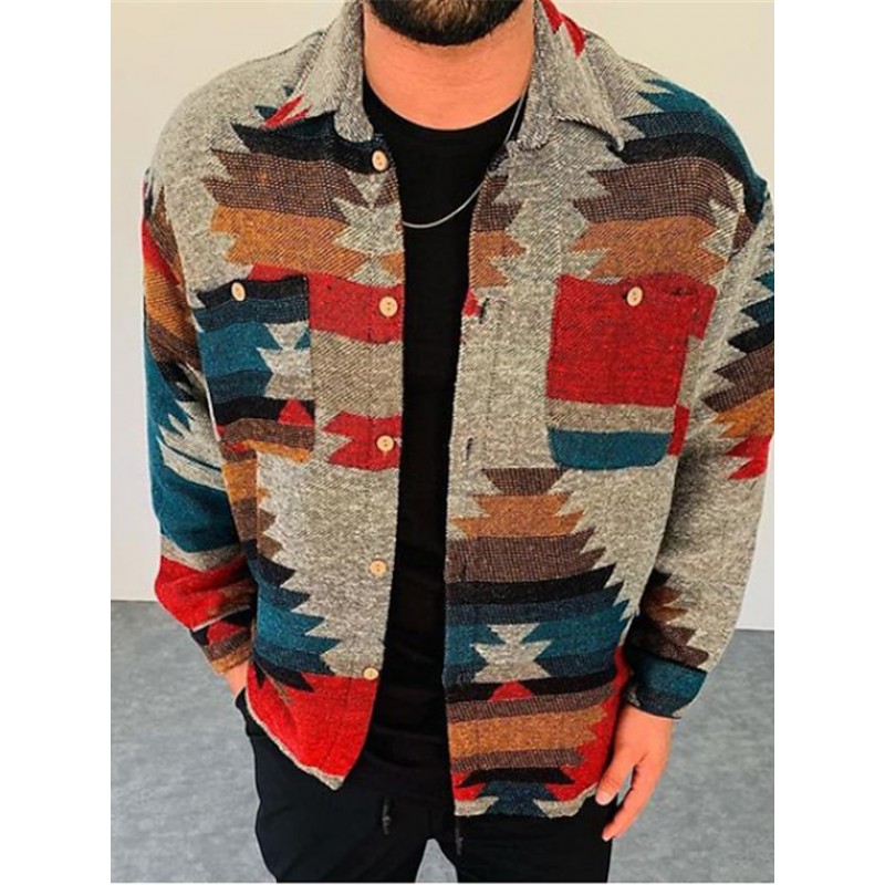 Men's Jacket Regular Pocket Print Coat Gray Sporty Street Fall Single Breasted Turndown Regular Fit S M L XL XXL 3XL / Long Sleeve / Geometric
