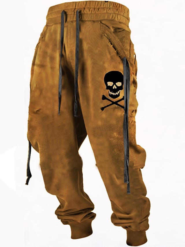 Men's Joggers Trousers Cargo Pants Drawstring Ribbon Print Graphic Skull Comfort Breathable Pants Casual Daily Cotton Blend Sports Fashion Brown Micro-elastic / Elasticity