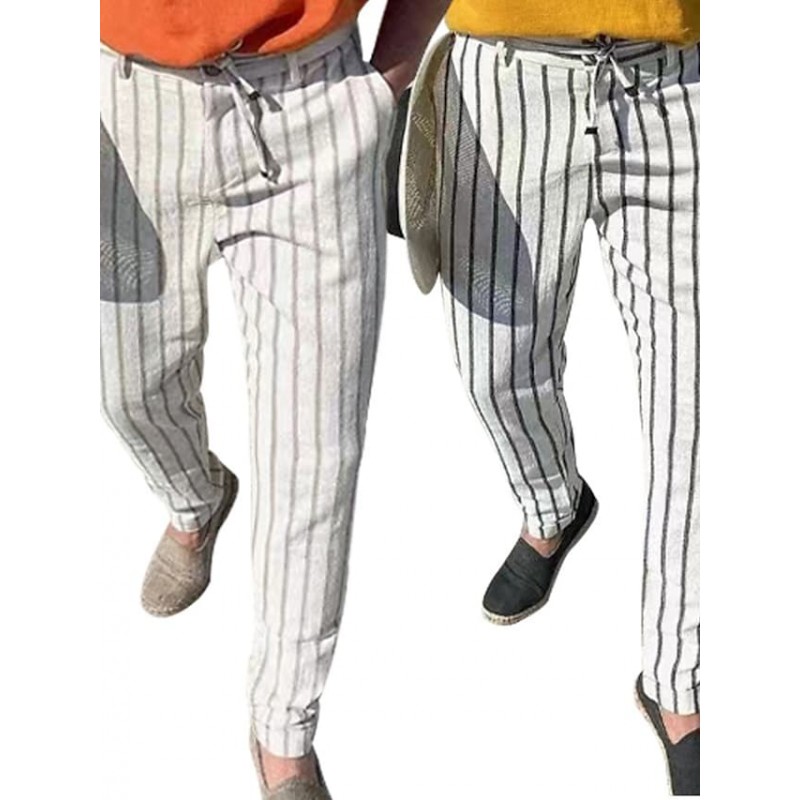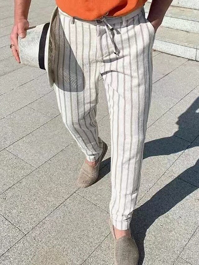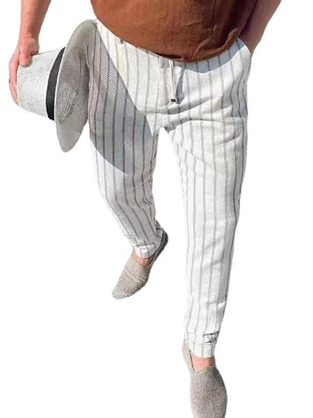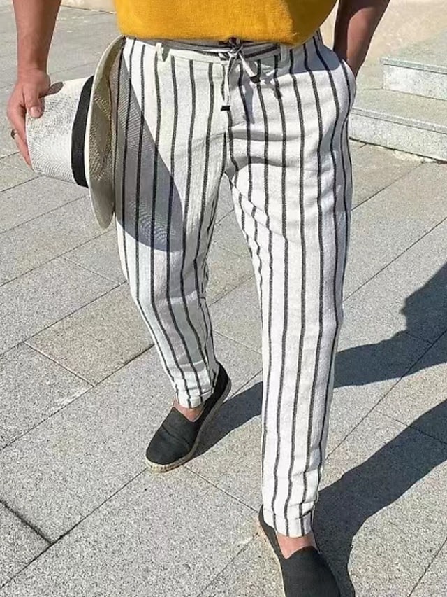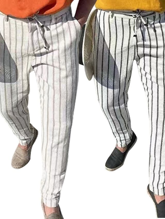 Men's Joggers Trousers Casual Pants Drawstring Elastic Waist Stripe Comfort Breathable Pants Casual Daily Cotton Blend Sports Fashion Black / White Grey Micro-elastic / Elasticity
