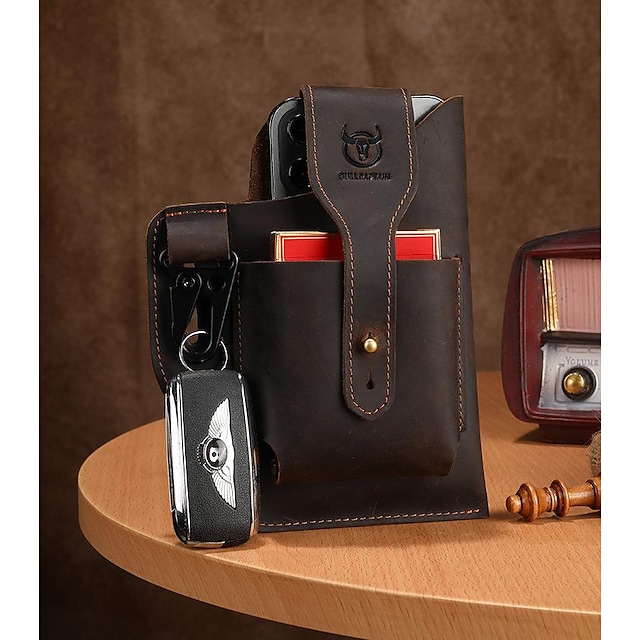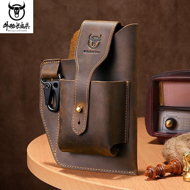 Men's Leather Bag Bum Bag Fanny Pack Cowhide Zipper Solid Color Outdoor Daily Holiday