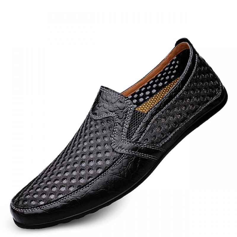 Men's Loafers & Slip-Ons Comfort Loafers Summer Loafers Casual Athletic Outdoor Walking Shoes Mesh Cowhide Breathable Handmade Booties / Ankle Boots Black Brown Blue Spring Summer / Hollow-out