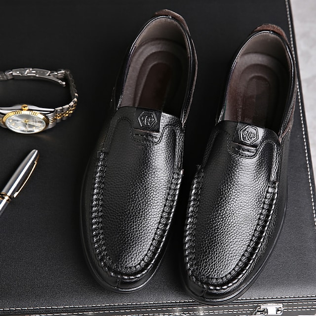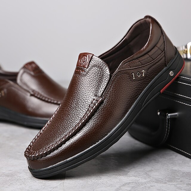 Men's Loafers & Slip-Ons Leather Loafers Casual Daily Office & Career PU Black Brown Fall Spring