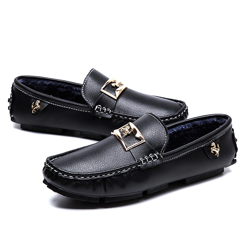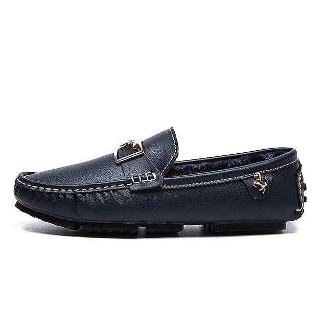 Men's Loafers & Slip-Ons Moccasin Comfort Shoes Fur Lined Casual Classic British Daily Office & Career PU Black Blue Fall Winter