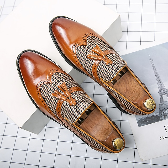 Men's Loafers & Slip-Ons Tassel Loafers Casual British Daily Party & Evening PU Black Brown Color Block Fall Spring