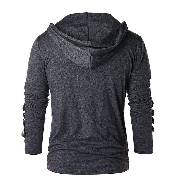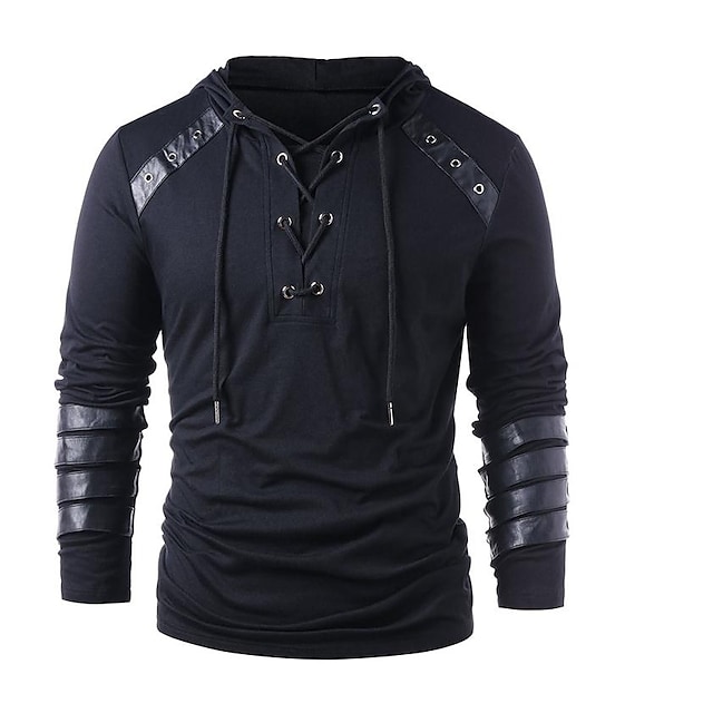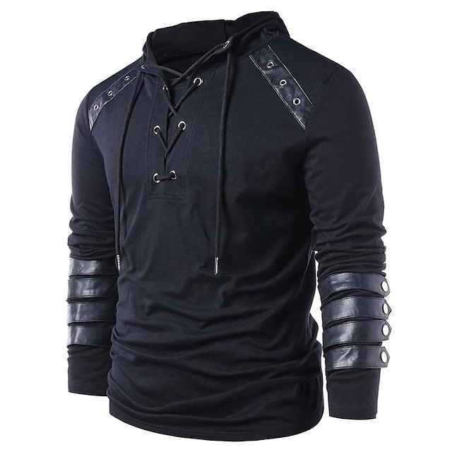 men's long sleeve hooded pullover lace up hoodie stitching leather armor sweatshirt medieval vintage rivet gothic steampunk hoodies black s