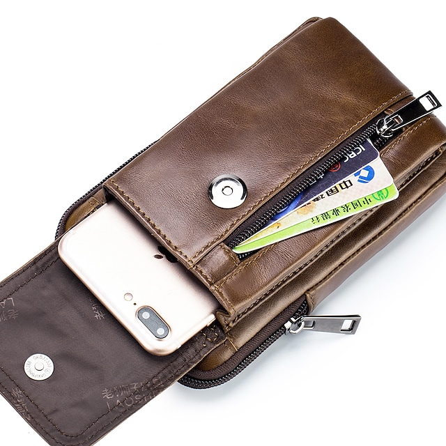 Men's Messenger Bag Fanny Pack Cowhide Zipper Plain Daily Outdoor Black Brown