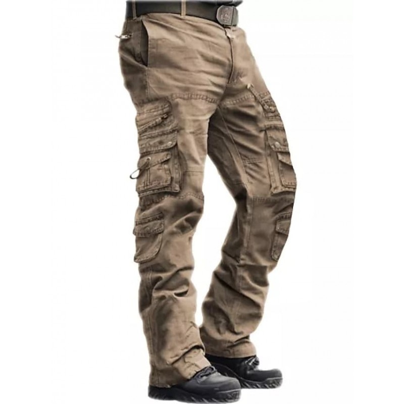 Men's Outdoor Vintage Washed Cotton Washed Multi-pocket Tactical Pants multi-pocket cargo pants straight pants trousers work pants khaki green