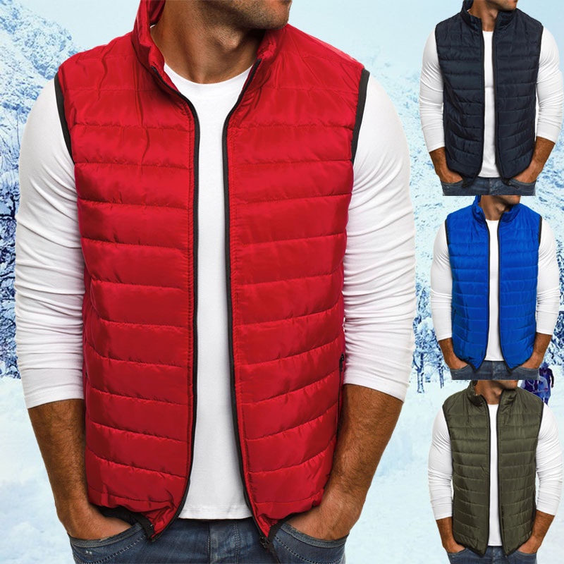 Men's lightweight Padded Coat Autumn Winter Light Down Fashion Short Thermal Vest Sleeveless Stand Collar Down Jacket