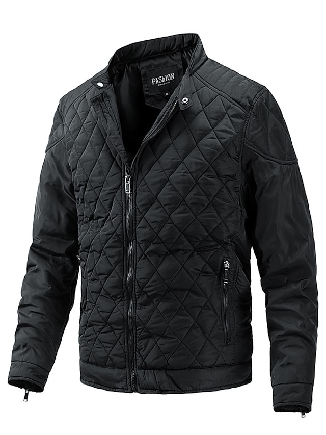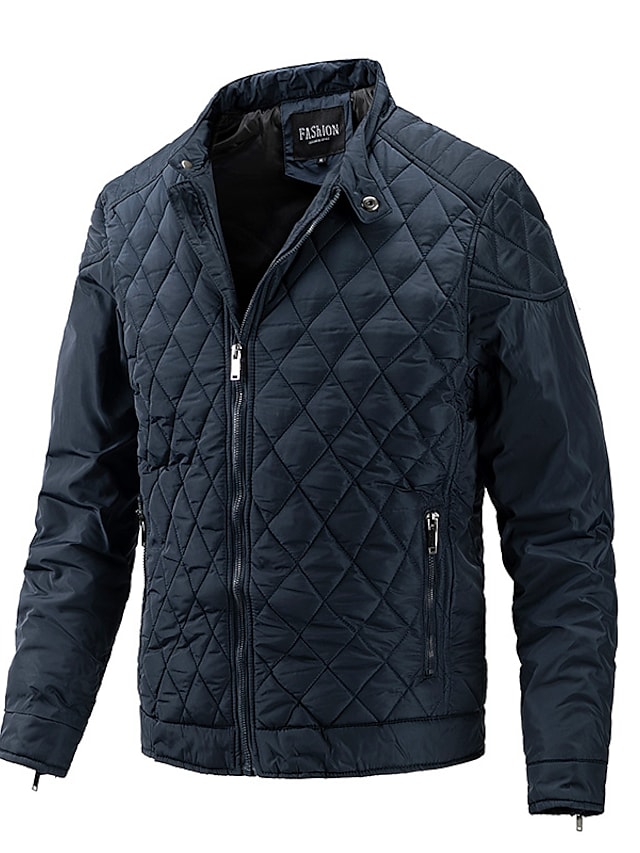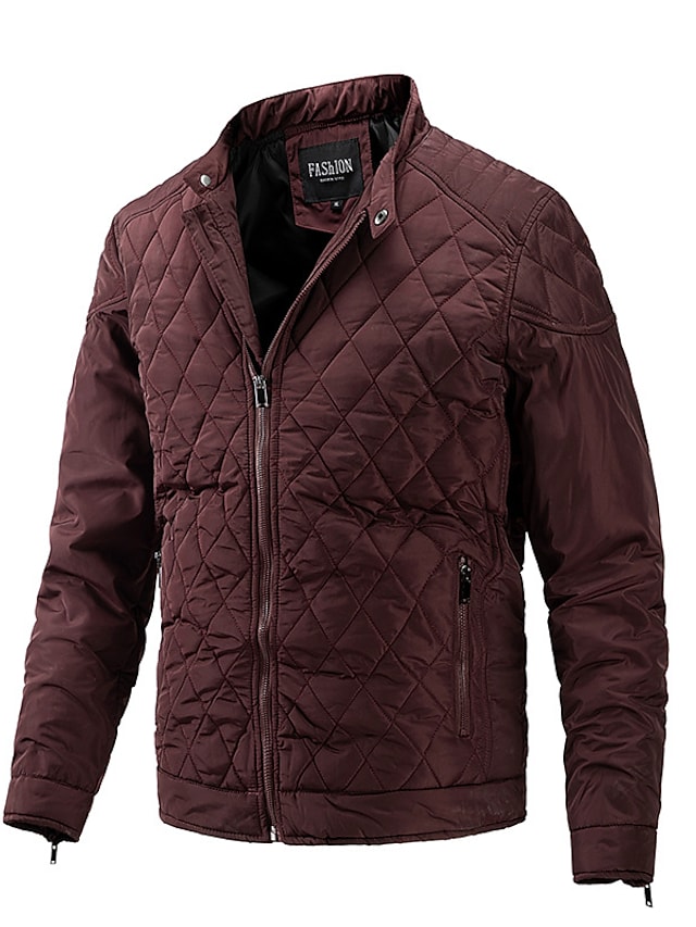 Men's Parka Outdoor Street Daily Fall Winter Regular Coat Stand Collar Regular Fit Warm Breathable Streetwear Casual Jacket Long Sleeve Solid Color Pocket Black Wine Royal Blue / Going out