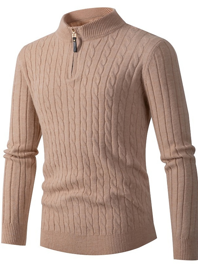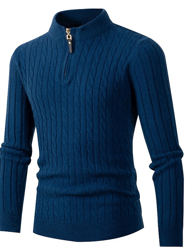 Men's Pullover Sweater Jumper Ribbed Knit Zipper Knitted Solid Color Stand Collar Stylish Basic Daily Holiday Fall Winter Black Gray M L XL / Long Sleeve / Long Sleeve / Weekend