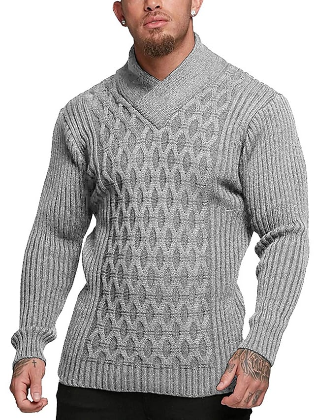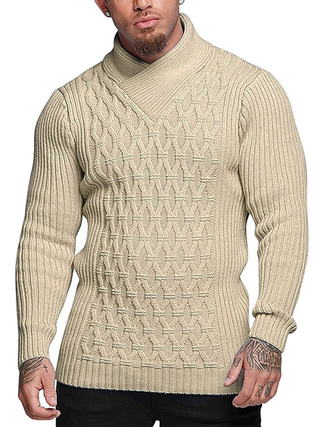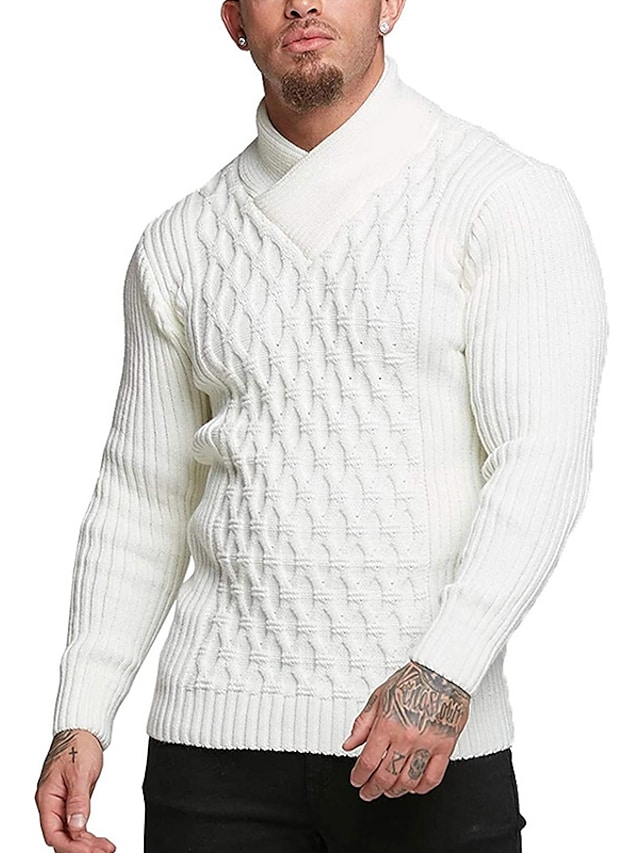 Men's Pullover Sweater Jumper Waffle Knit Knitted Solid Color Stand Collar Stylish Basic Daily Holiday Fall Winter White Black M L XL / Long Sleeve
