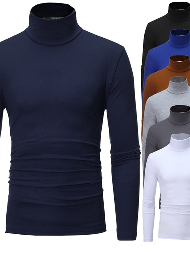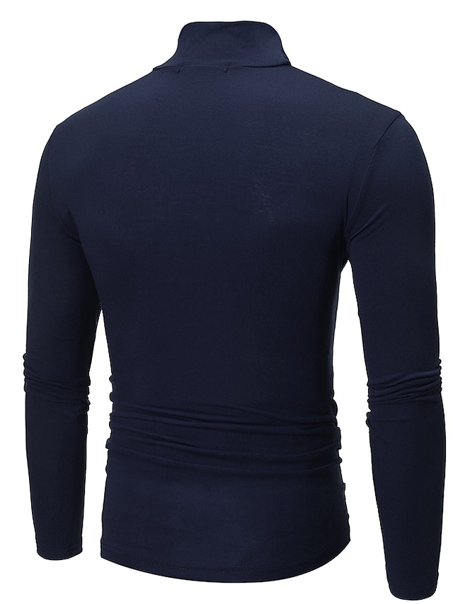 Men's Pure Color T-Shirt Thermal Mock Turtleneck Tops Long Sleeve Basic Casual Baselayers Comfort Slim Fit Pullover Shirt Tops Blouse for Autumn Navy Blue
