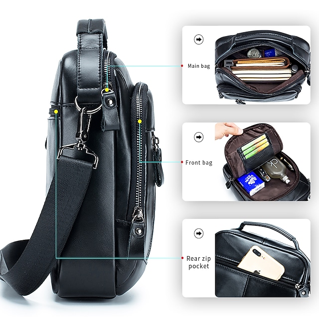 Men's Retro Leather Bag Handbags Crossbody Bag Cowhide Zipper Daily Office & Career Black Brown