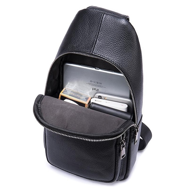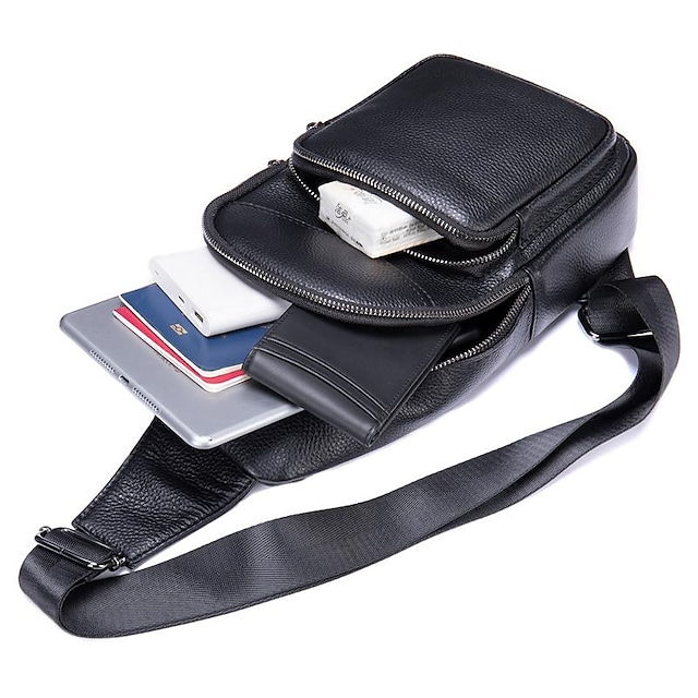 Men's Retro Messenger Bag Messenger Bag Sling Shoulder Bag Nappa Leather Cowhide Zipper Daily Black