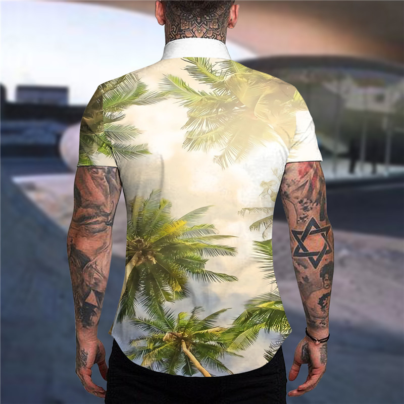 Men's Shirt Coconut Tree Turndown Green Short Sleeve Print Outdoor Street Button-Down Print Tops Fashion Designer Casual Hawaiian / Summer / Spring / Summer
