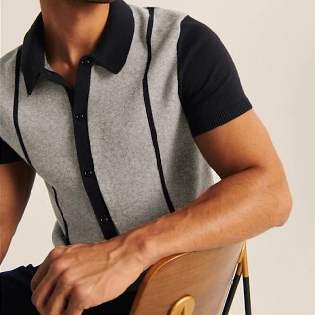 Men's Shirt Color Block Turndown Street Casual Daily Button-Down Short Sleeve Tops Casual Fashion Breathable Comfortable Summer Shirt Black / Gray