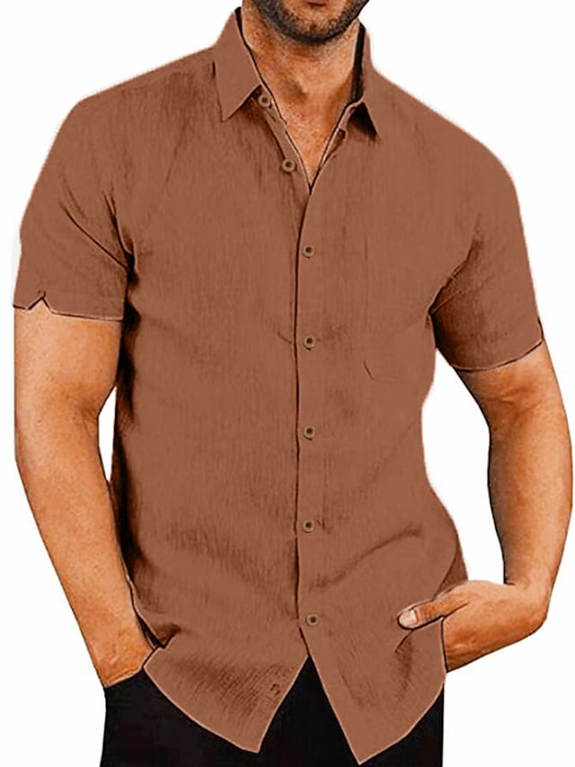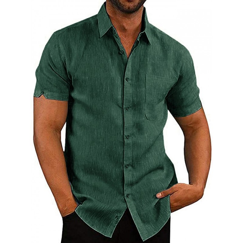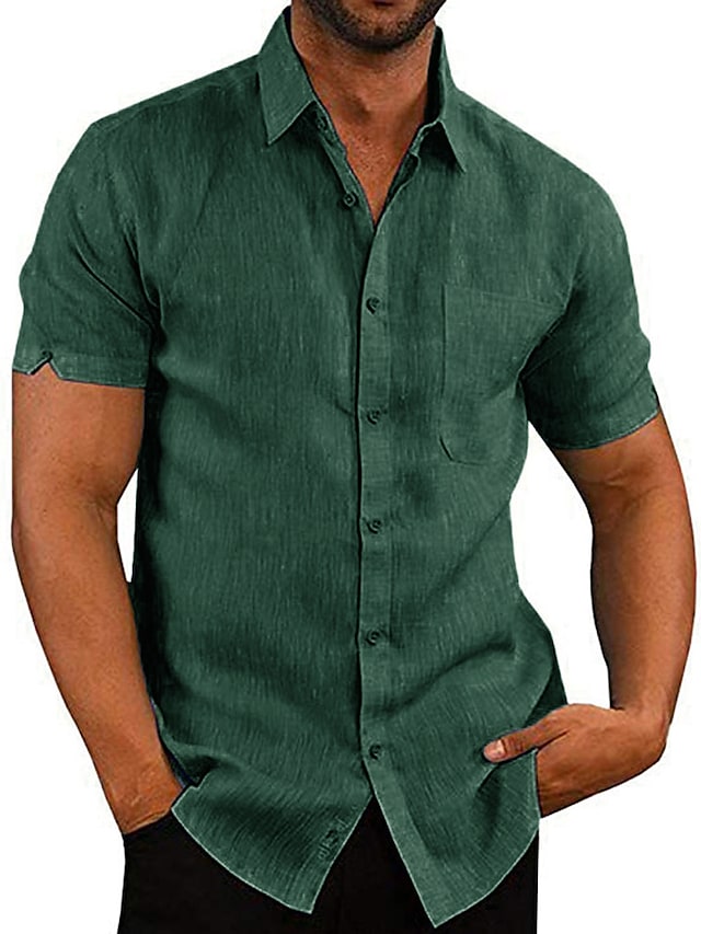 Men's Shirt Cotton Solid Colored Collar Button Down Causal Street Work Daily Short Sleeve Tops Basic Green White Black Summer Shirt Outdoor Comfortable Breathable Quick Dry