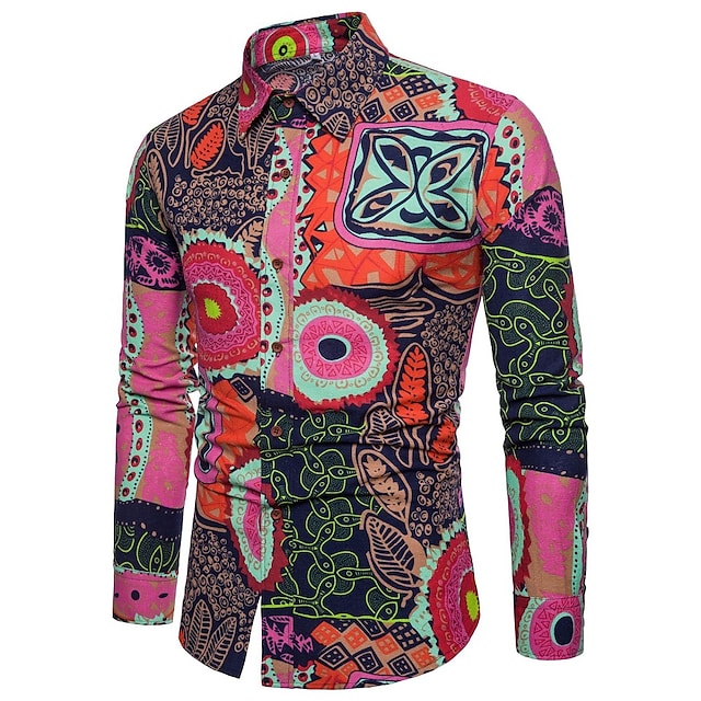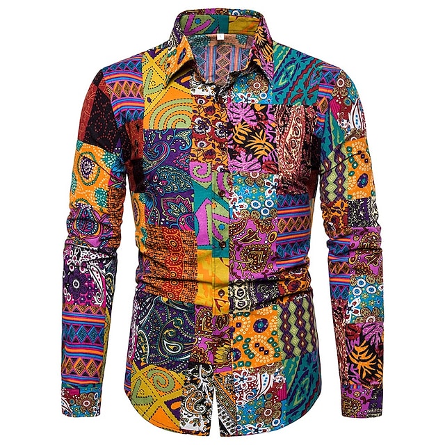 Men's Shirt Graphic Color Block Print Long Sleeve Regular Fit Fashion Tops Basic Purple Blushing Pink Wine
